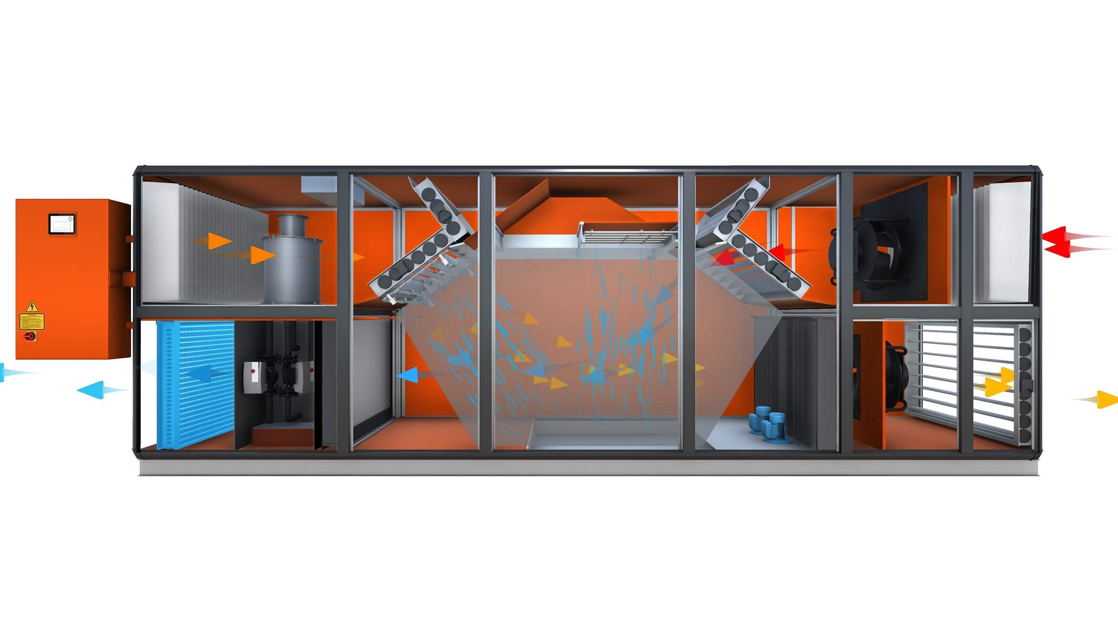 To omogoča nova tehnologija kompresorjev, ki v zaprtem sistemu ustvarja vakuum stanja 15 mbar. Na ta način voda izhlapi pri temperaturi tik nad 10°C. V prvem koraku se zunanji zrak predhodno ohladi v protitočem rekuperatorju s sistemom indirektnega adiabatnega hlapilnega hlajenja. Nato se zrak na toplotnem izmenjalniku, ki uporablja ohlajeno vodo kompresorskega krožnega procesa ohladi na 12°C.