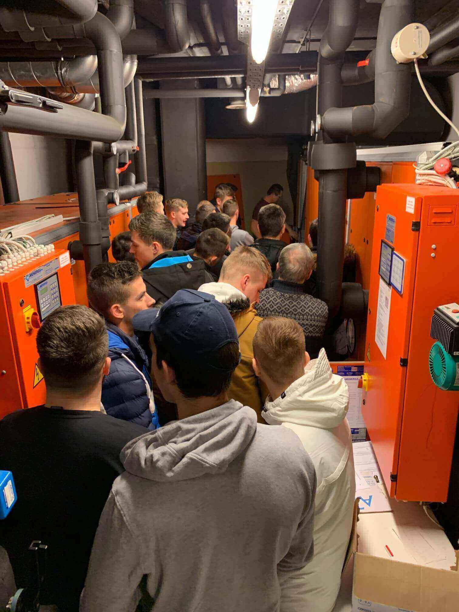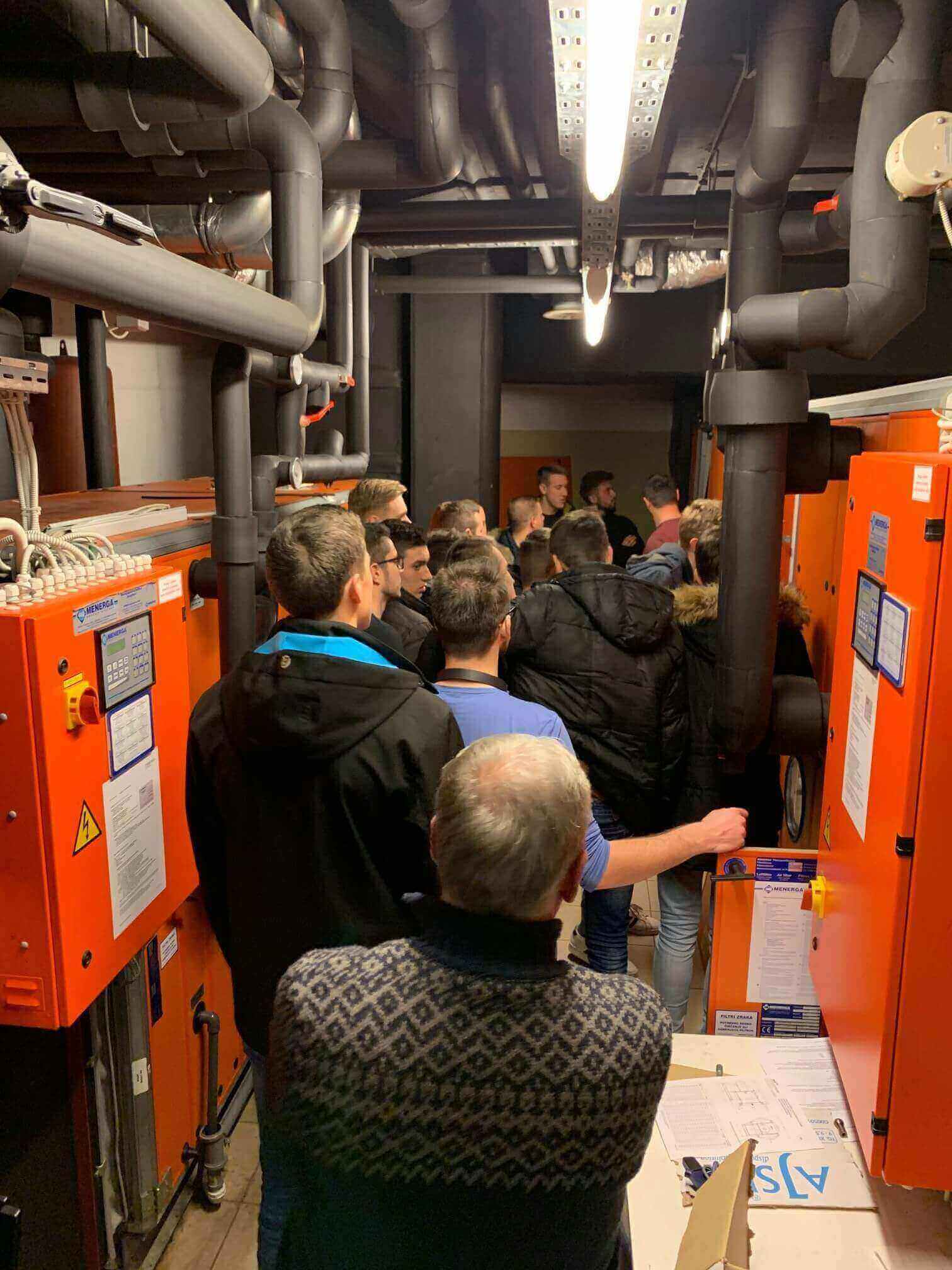 Dijake smo popeljali tudi v strojnico, kjer so si med drugim lahko ogledali delovanje naprav Menerga.  Podrobneje so si ogledali napravo RewaTemp, ki je sestavljena iz toplotne črpalke in hladilnega agregata, kar pomeni, da naprava istočasno omogoča ogrevanje in hlajenje. Dijaki so imeli tudi priložnost videti RewaTemp napravo še v fazi izdelave, kar je bilo zanje še posebej zanimivo.